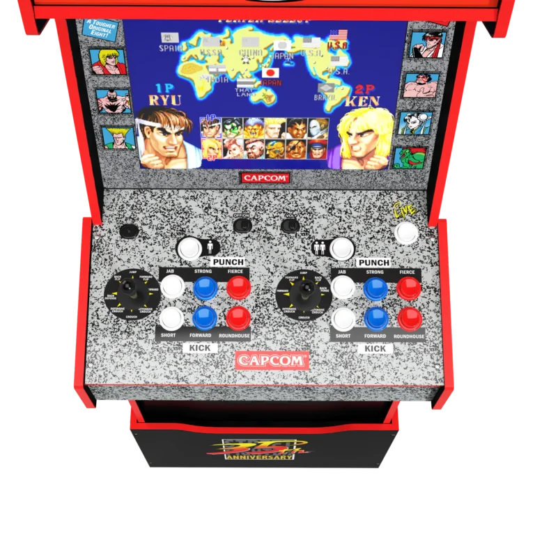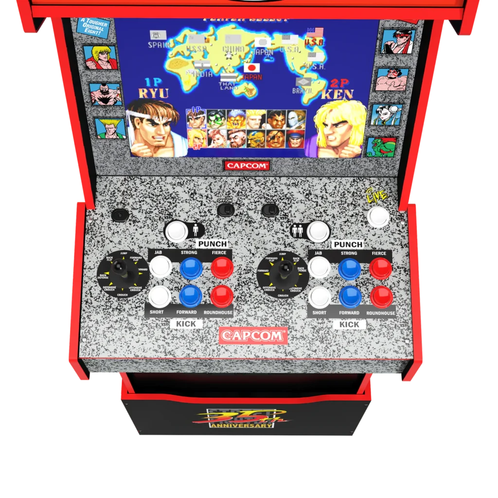 Street Fighter™ II ha dato il via alla rinascita della cultura arcade negli anni ’90. Porta a casa un pezzo di storia del gioco con Arcade1Up Street Fighter™ II: CE HS-5 Deluxe Arcade Machine. Ispirata all’iconica forma del cabinet Dynamo HS-5, questa elegante macchina combina l’aspetto classico che ricordi con le moderne funzionalità di gioco. Con funzionalità Wi-Fi Multiplayer e Leaderboard, scegli tra 14 giochi Capcom di successo e sfida i tuoi amici online.